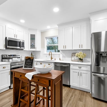 CabCo Design and Renovation just completed a full home renovation —a 100 yr old farmhouse on 3 acres turned into the perfect homestead. One of the standout spaces is the kitchen, where modern elegance meets timeless charm. Bright white cabinetry, a bold herringbone backsplash, warm wood accents, and sleek lighting transformed the room from dated and tired into fresh and inviting. It’s now a true centerpiece of the home, designed for both beauty and function. Curious to see the full journey and the before-and-after of this entire house makeover? Dive into the blog for more insights and inspiring transformations.
